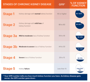 Source: National Kidney Foundation. Stages of Chronic Kidney Disease (CKD): Estimated Glomerular Filtration Rate (eGFR). Available at: https://www.kidney.org/kidney-failure-risk-factor-estimated-glomerular-filtration-rate-egfr. Accessed November 12, 2025.